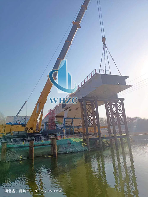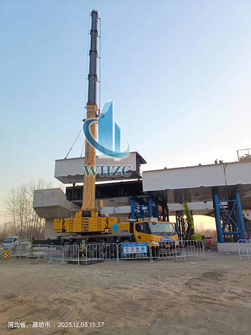 在跨河道吊装关键作业阶段,我方QAY1000展现了强大的吊装施工能力。