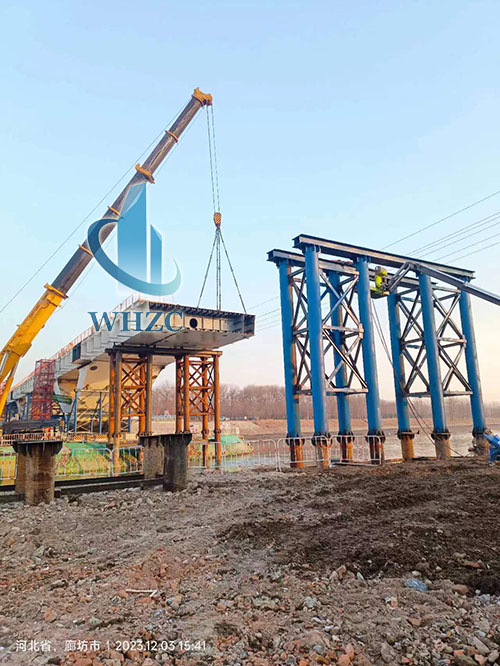 可以看到,当天,跨河面的第一段已经顺利吊装完成。