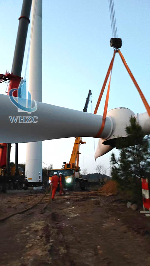 叶轮在辅吊的辅助下,稳稳落至地面基座