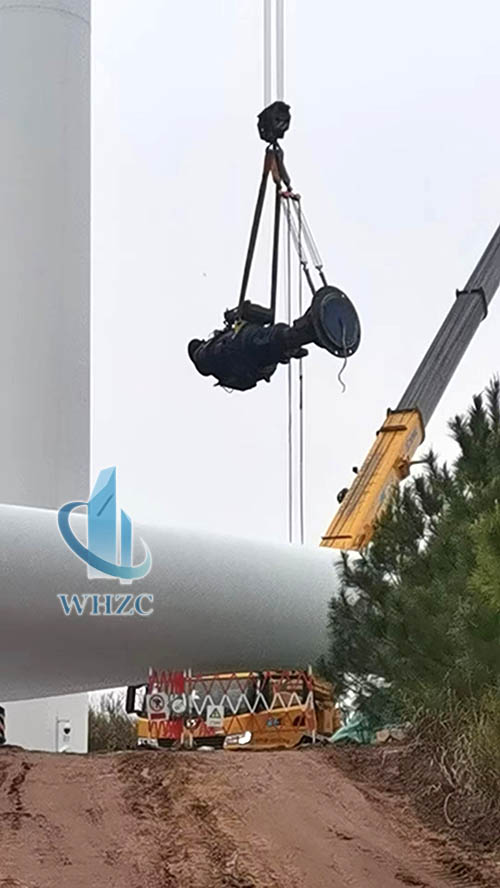 从机舱中,小心拆除下旧齿轮箱